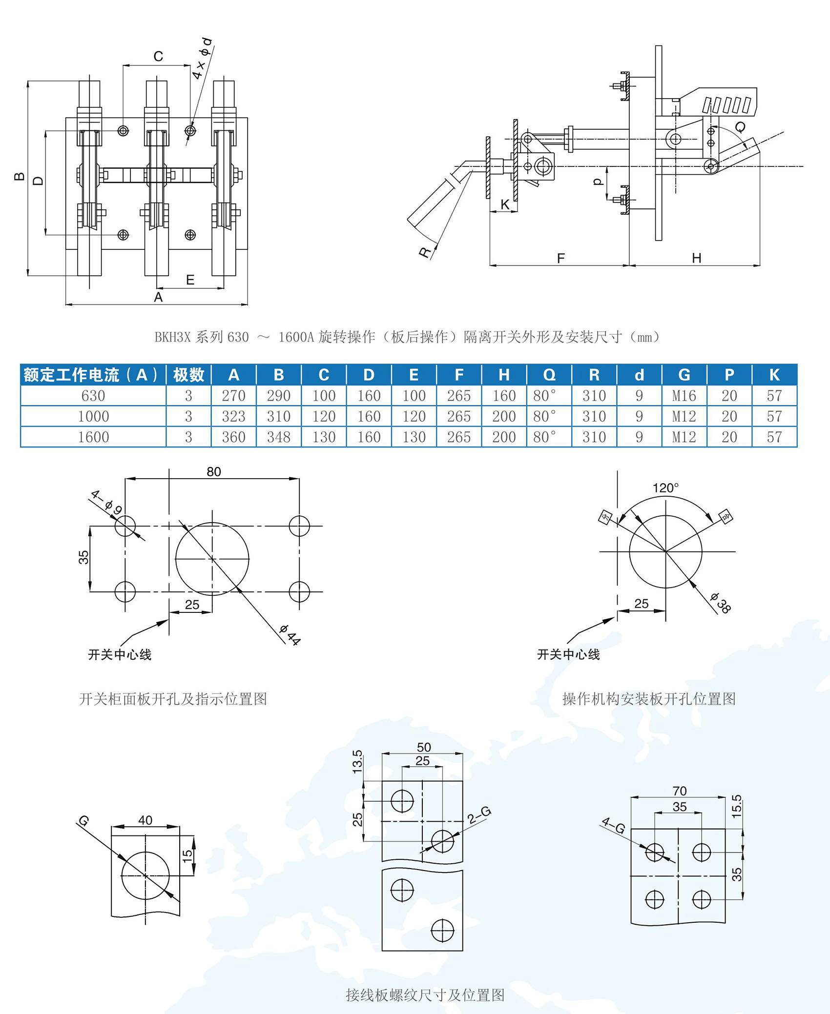 BKH3系列隔离开关适用于交流50Hz,额定工作电压380V及以下,额定工作电流100A-1600A的成套配电装置中,作为不频繁手动接通和分断电流或作隔离器用。BKH3系列隔离开关符合GB/T 14048.3《低压开关设备和控制设备低压开关、隔离器、隔离开关及熔断器组合电器》。