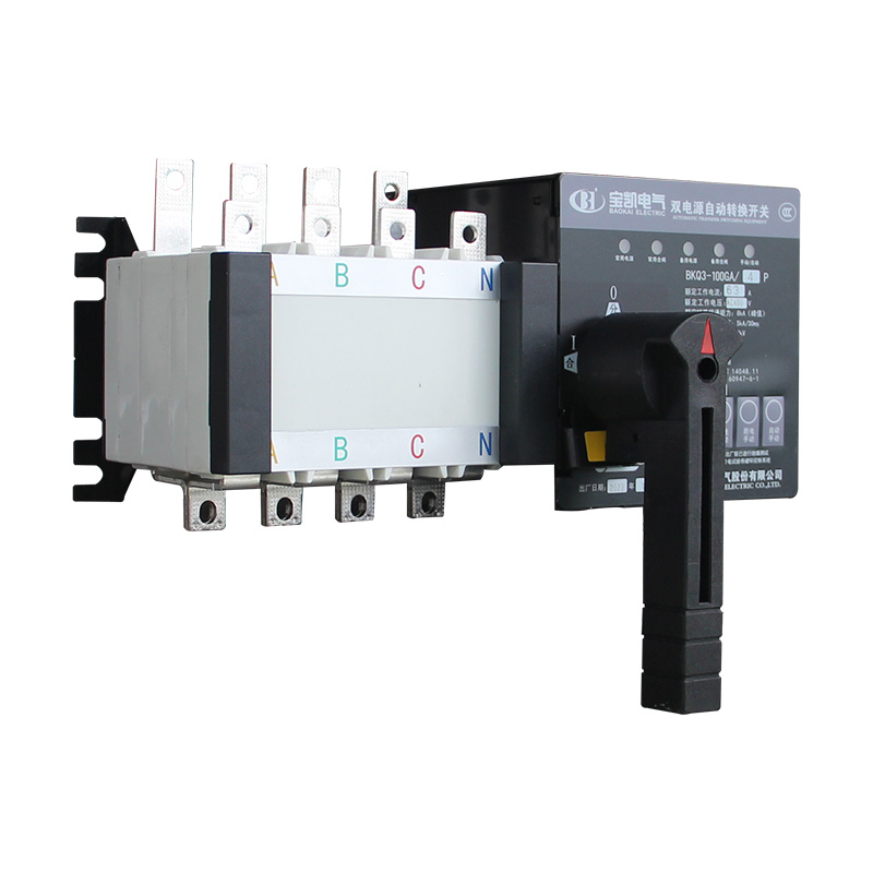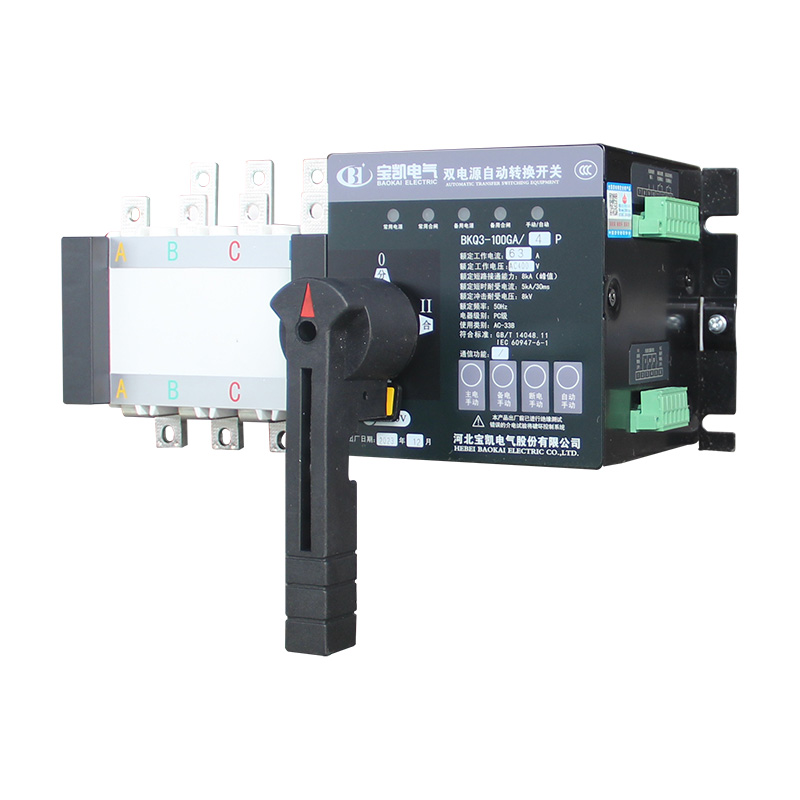 BKQ3-GA/G系列自动转换开关电器(PC级)主要适用于交流50/60Hz,额定工作电压400V及以下,额定电流16A至630A的双路配电系统中,自动将一个或几个负载电路从一个电源转换至另外一个电源,以保证负载电路的正常供电。产品主要应用于医院、商场、银行、化工、高层建筑、军事设施、消防等不允许断电的重要场所。 产品符合GB/T 14048.11《低压开关设备和控制设备 第 6-1 部分:多功能电器 转换开关电器》。