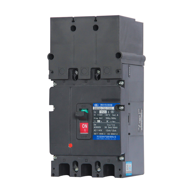 BKM3HU系列塑料外壳式断路器适用于交流50/60Hz,额定绝缘电压1140V,额定工作电压至1140V,额定电流至630A的配电网络、光伏汇流箱、光伏箱变、低压柜中,实现线路、电源、电动机以及用电设备等过载、短路等保护,提高供电、光伏发电的可靠性,产品主要应用于新能源、工控、轨道交通等。本系列断路器具有隔离功能。本系列断路器执行标准:IEC 60947-1及GB/T 14048.1 《低压开关设备和控制设备 第1部分:总则》IEC 60947-2及GB/T 14048.2 《低压开关设备和控制设备 第2部分:断路器》IEC 60947-4及GB/T 14048.4 《低压开关设备和控制设备 第4-1部分:接触器和电动机起动器 机电式接触器和电动机起动器(含电动机保护器)》